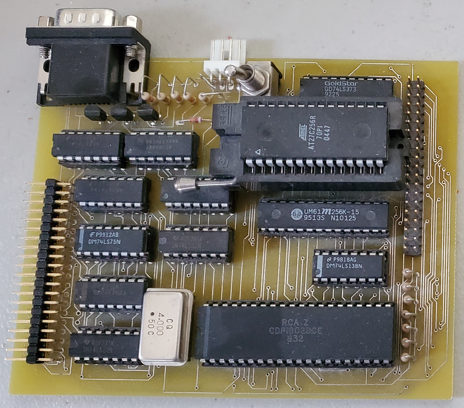 Pico/Elf V2 is an evolution of the Micro/Elf. Pico/Elf removes the address display, data displays, and input togges along with associated circutiry in order to add an RS232 port, ROM socket and IDE/CF interface, allowing for a complete machine capable of running Elf/OS.